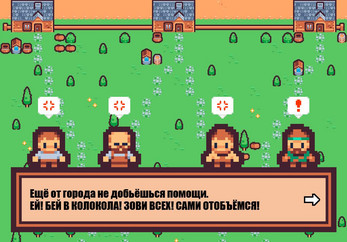 ". . . z z Z Z" - "А? Что такое?" - "Вот блин. Проклятая живность вновь лезет к нам." - "Ещё от города не добьёшься помощи. ЕЙ! БЕЙ В КОЛОКОЛА! ЗОВИ ВСЕХ! САМИ ОТОБЪЁМСЯ!"