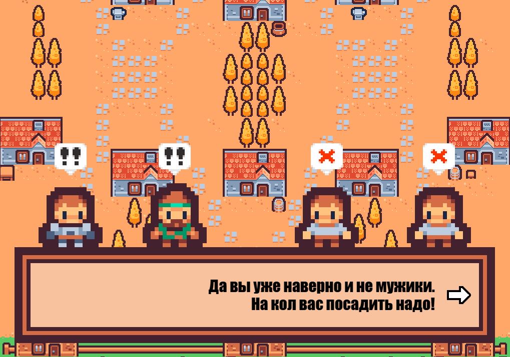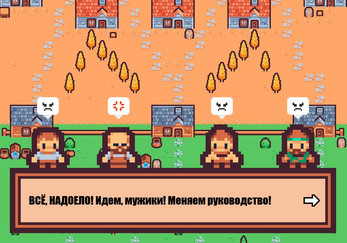 "Будут знать как к нам лезть!" - "А какого чёрта так сложно получить помощь от города?" - "Налоги растут. Армии нет. Развития никакого. Что за..." - "ВСЁ, НАДОЕЛО! Идем, мужики! Меняем руководство!".