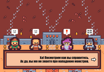 "Не армия, а школьный кружок. Совсем всё разбазарили." - "Куда уходят наши налоги? Тут в замке даже нет ничего дорогого." - "Короче! Мы свергаем правительство! Теперь то всё наладится."